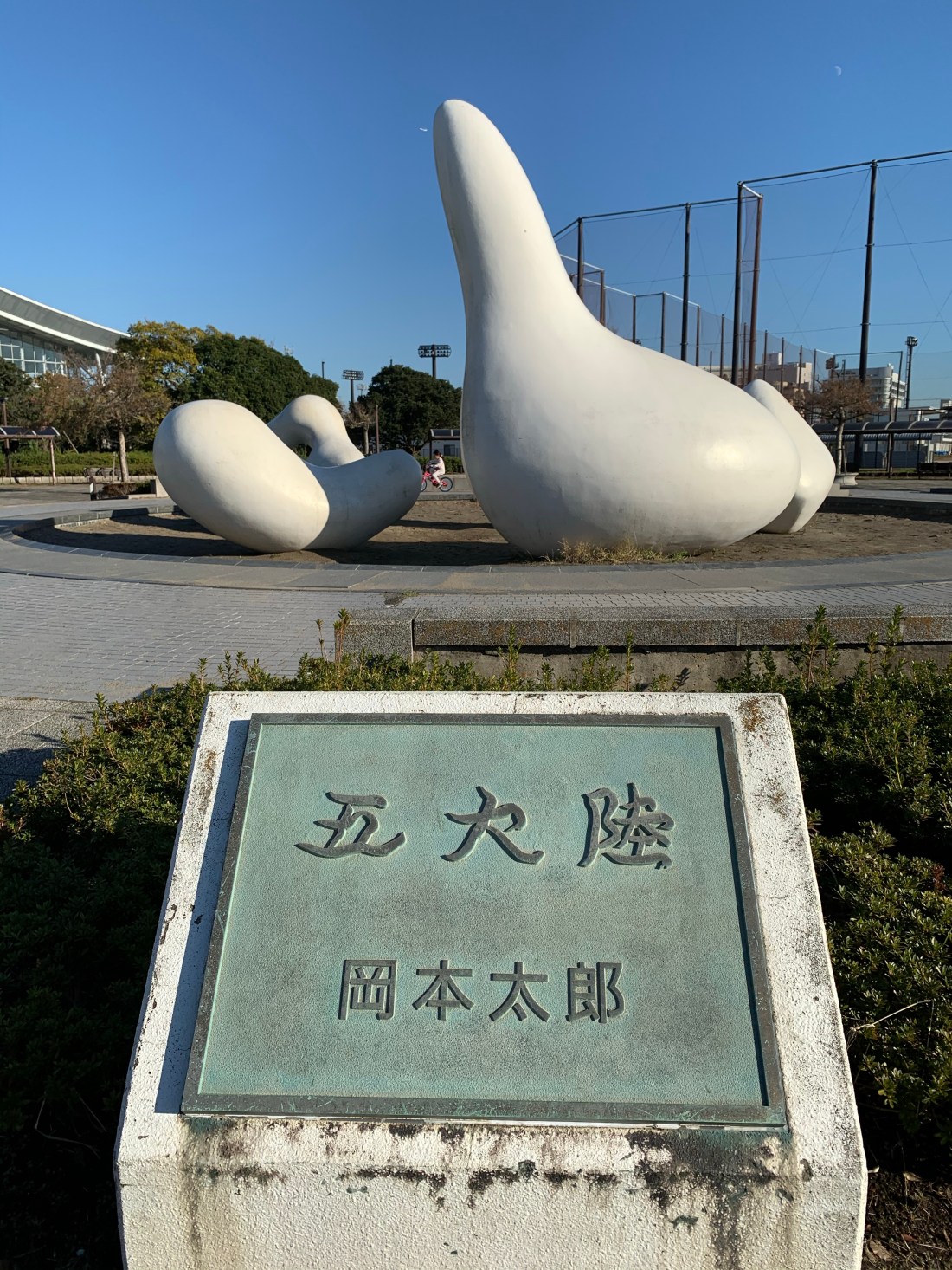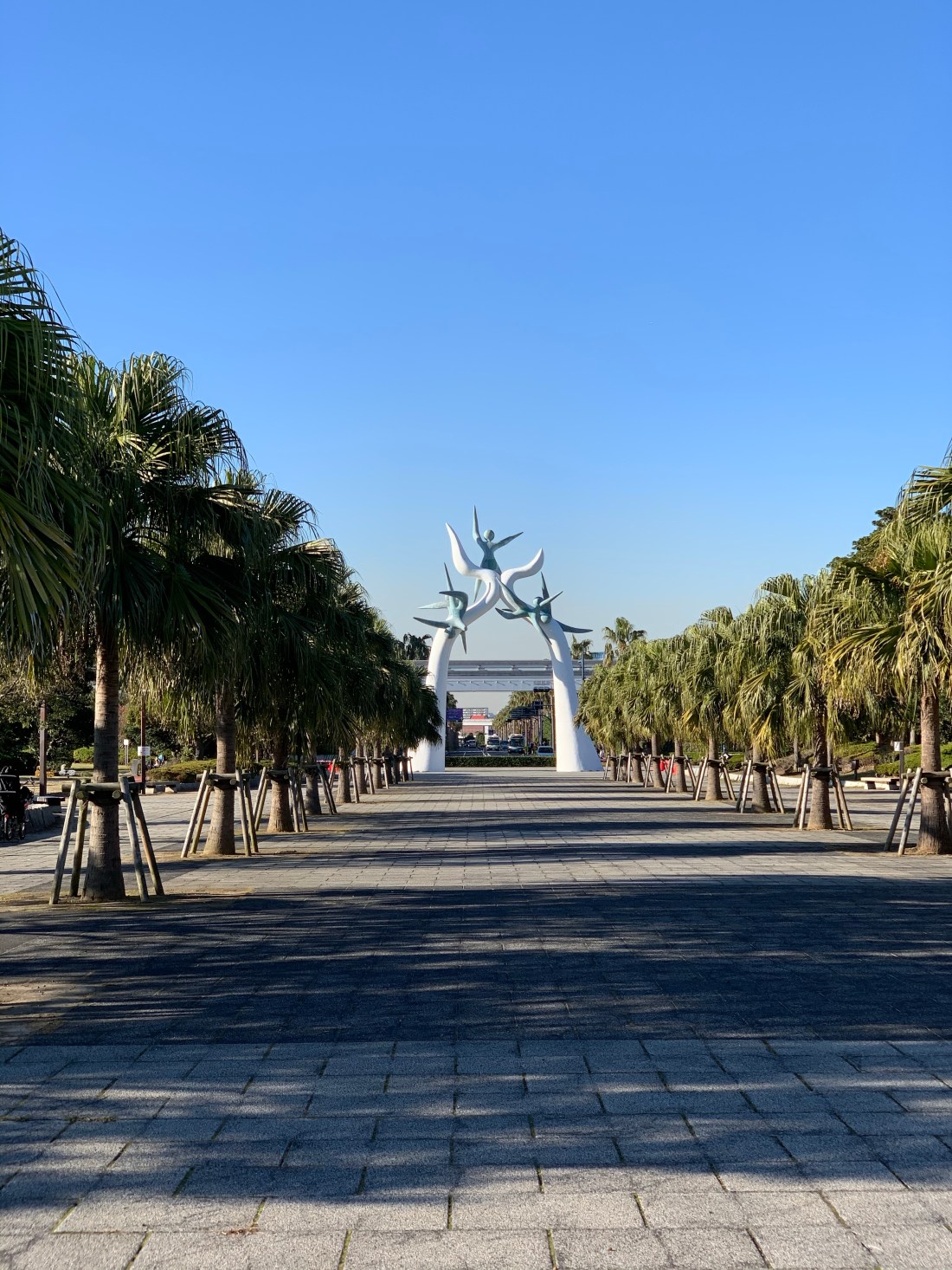 舞浜駅からイクスピアリを左手にまっすぐ10分ほど歩く。突き当たりに人間を模したオブジェが迎えてくれる、スポーツ施設が充実している公園です。